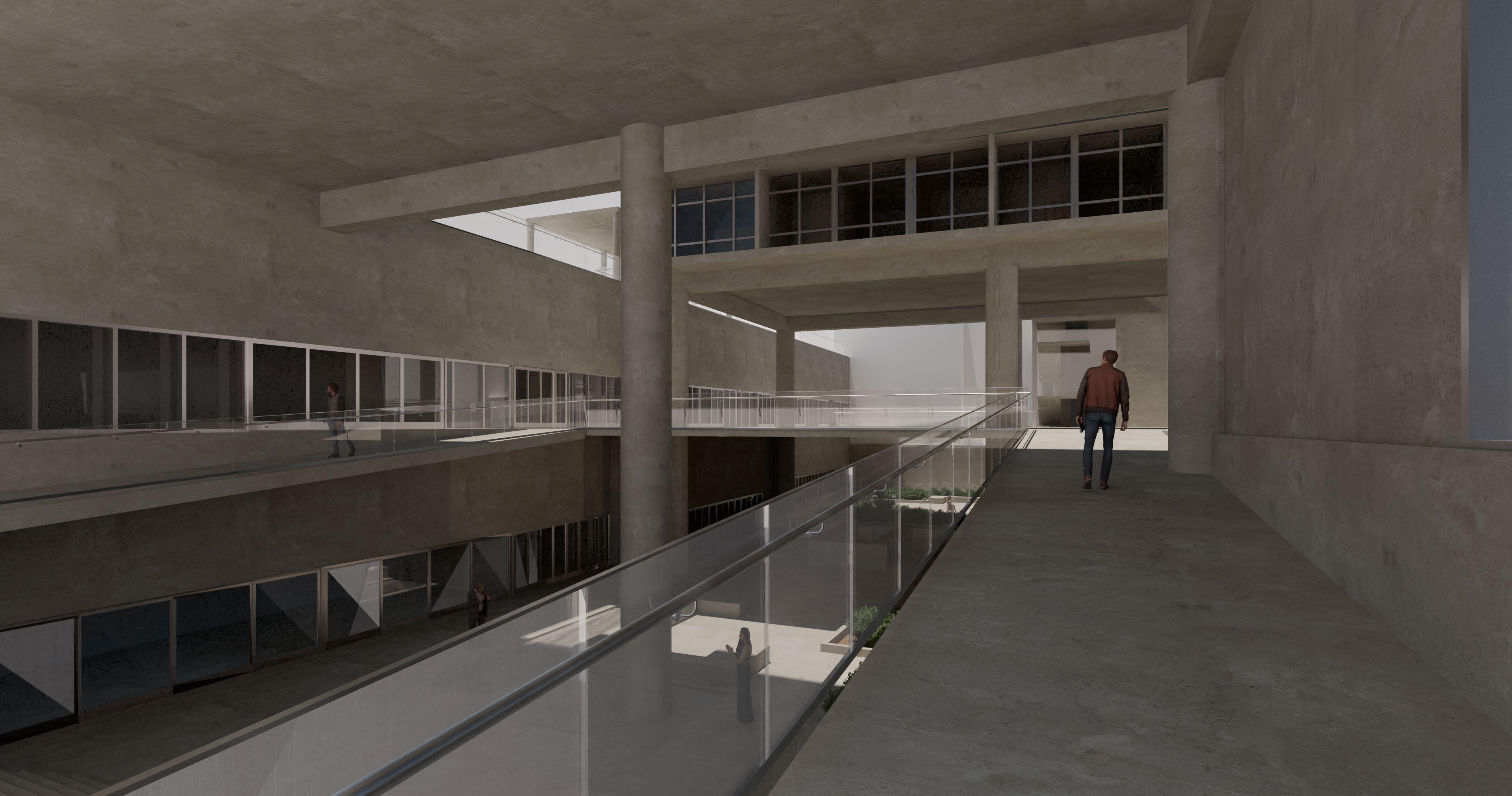 Nesse microcosmos proposto, tentamos criar uma espacialidade que é uma representação crítica do que pode ser um complexo faculdade-museu-hospital em um mundo que é coagido a se aceitar pós-moderno.