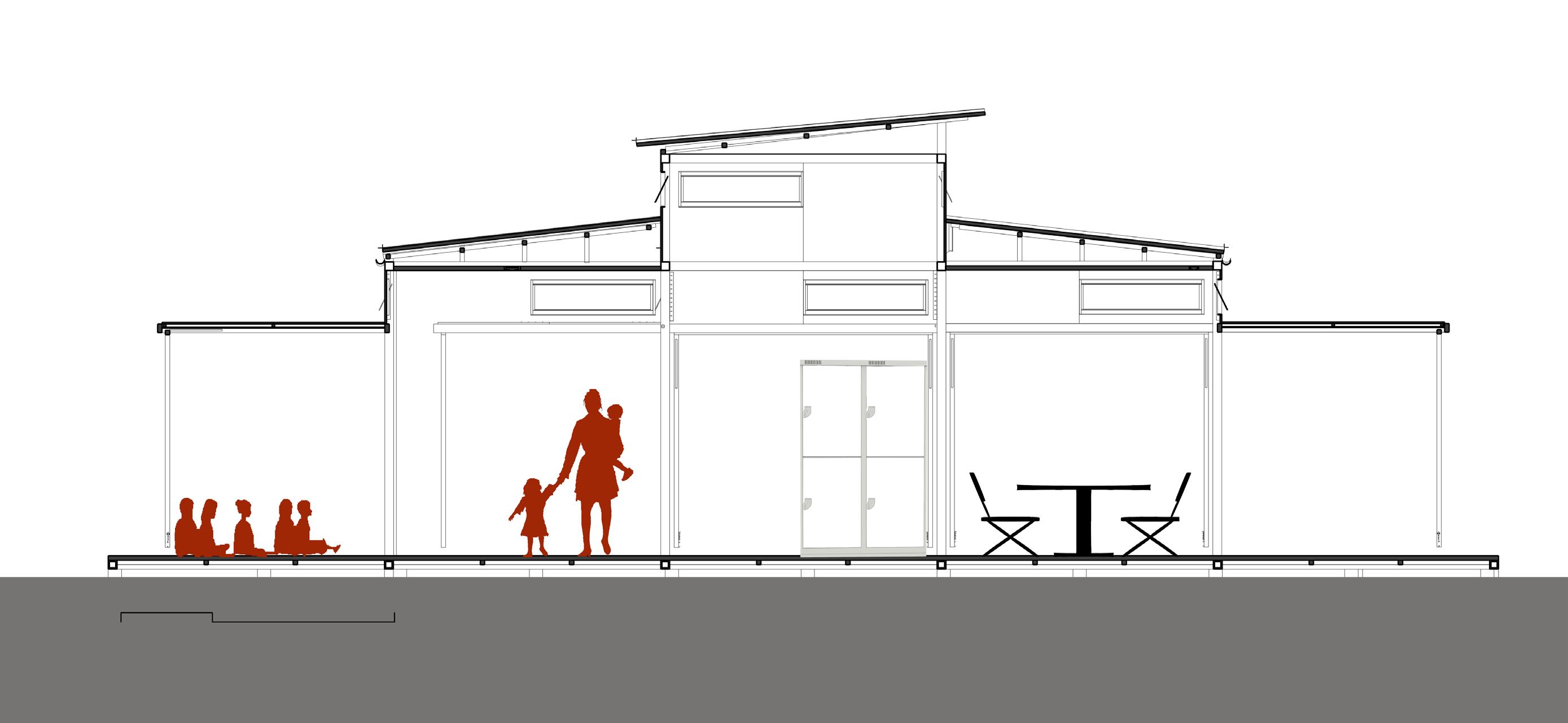 Além de estar próxima a serviços que atendem às necessidades básicas das mulheres, a Praça da República é um espaço parcialmente pavimentado que abriga grande variedade de usos e fluxo intenso de pessoas durante o dia. Por essa razão, optou-se pela construção de um módulo expansível, de modo que as paredes se abrem e assumem papel de cobertura para receber diferentes atividades, como atendimento médico, distribuição de alimentos, feiras livres, atendimento terapêutico, atividades culturais etc.