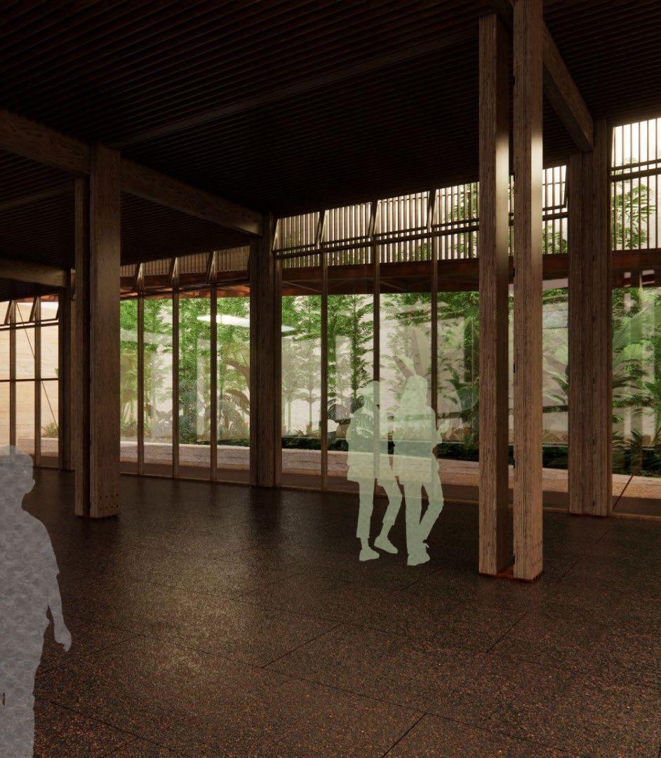 Paredes: As paredes serão compostas por uma grelha metálica de grid 1,0 x 1,6 metros para conferir resistência e impedir a deformação dos painéis e uma vedação de painéis de madeira laminada colada (MLC). Esse sistema estrutural foi pensado em função de sua alta resistência, mas, sobretudo, para tornar as paredes mais leves e fáceis de serem erguidas, uma vez que em que serão, em alguma medida, ocas.