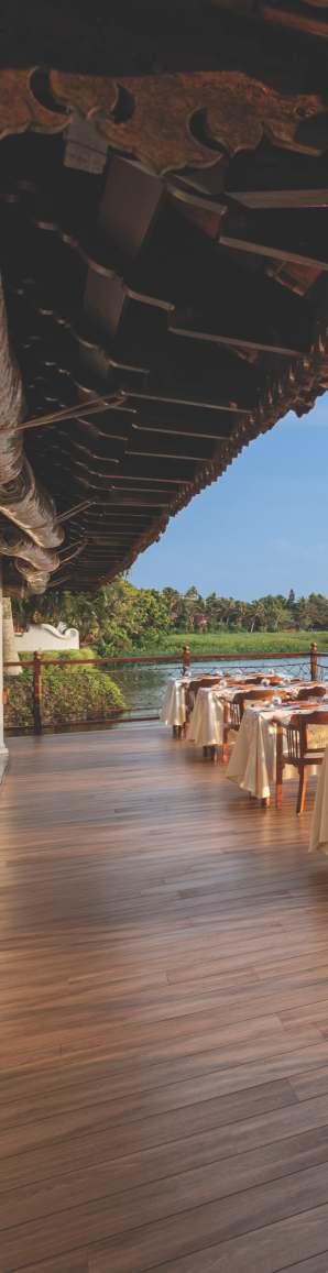 Apart from a breathtaking view of the pristine backwaters that stretch beyond the horizons, the resort also houses fifty-nine heritage luxury villas and rooms, built in the authentic architectural style of yesteryear Kerala.
