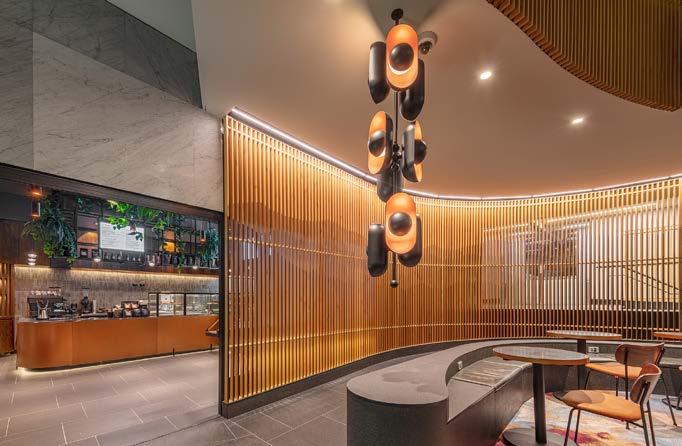 To achieve this elevated customer experience Paul Kelly Design has created three visually connected zones; the Business Lounge, Central Concierge Area and Copper Espresso Café. The integrated mixed use including food and beverage, individual work hubs, small catch ups tables, semi-private larger meetings spaces and building services touch point, all combine to creates a multi-dimensional space that allows customer to meet colleagues and or relax for a moment or two. CATEGORY