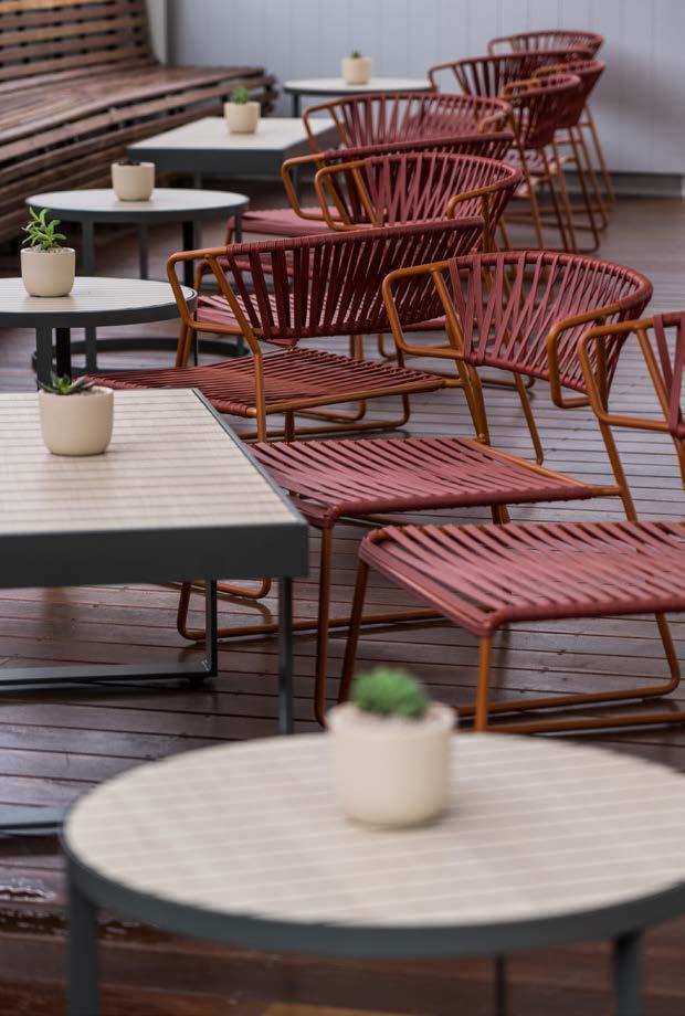 as Sky Deck’s open-air bar, where sweeping views meet a design language of sophistication and ease. The space is layered with rich textures, natural tones, and sculptural forms that blur the line between indoors and out, creating an atmosphere both elevated and inviting.