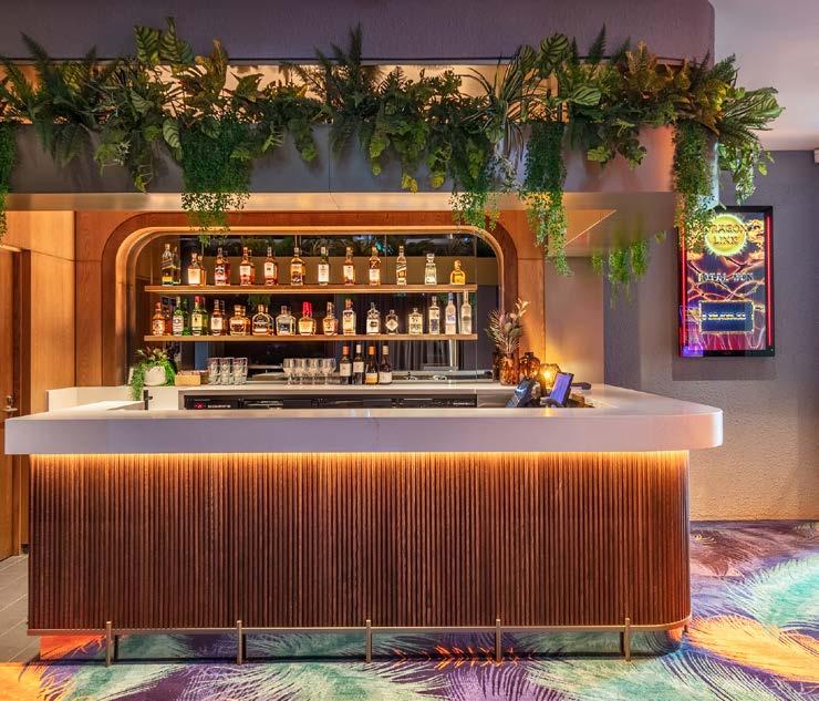 The Interior of the space touches on the Gold Coast and the exciting colours and experience of a beach holiday. The experience is definitely Casino inspired with bold expressions of colour and materials, backed up with vibrant lighting and sub-tropical landscaping.