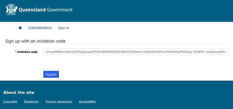 The webpage below will show your unique invitation code. The code will be filled in, as below Click Register.