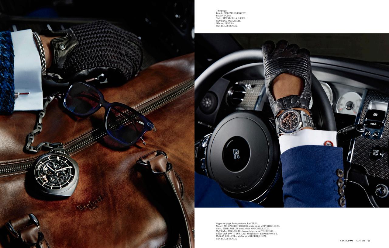 A curation of grooming products, jewelry, accessories and more these pages were meant to be an establishing shot of the MAXIM man and his everyday carry. From concept phase to photo retouch, I worked closely on set to assure the images carried a simple aesthetic and mood throughout each set.