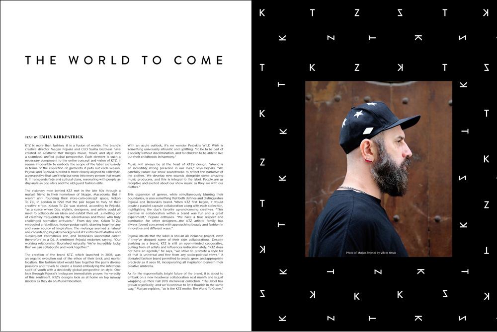 The WILD Magazine was a quarterly publication founded on the idea that fashion, design, and style are not mutually exclusive from the sociopolitical afairs that afect our world. The WILD team strives to generate a community of thinkers who share similar beliefs of progression. This includes an appreciate for fresh and thoughtful art, a steadfast respect for our troubled earth