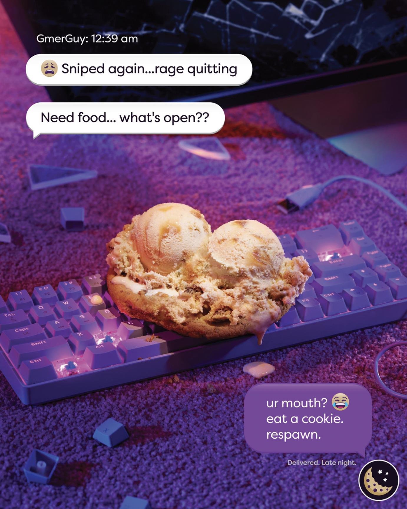 Following the success of CookieLab, Insomnia Cookies asked Adjective & Co. to come up with a launch strategy for a new product, Cookies in Ice Cream (Insomnia cookies inside premium ice cream). We created Foodity, a romanticized combo of creamy ice cream and graphic warm cookie imagery—an authentic treatment used to tantalize the senses in an ownable, foodie-centric visual story across digital, social and in-store applications.
