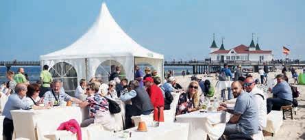 Spitzenbiere entstehen, und können die verschiedenen Sorten probieren. Im Ausschank ist ein saisonales Bier, das vor Ort gebraut wird. Als „Unterlage“ dient ein knuspriges Hähnchen oder ein Flammkuchen. Das Brauhaus verfügt über rund 180 Plätze mit vielen kleinen und großen Nischen, eine Bar, eine eigene Destillerie (kosten Sie dort auch einmal einen der „Usedomer Geister“!) sowie einen wunderschönen, windgeschützten und sonnigen Biergarten. Geö net ist das Brauhaus täglich von 12 bis 21.30 Uhr.