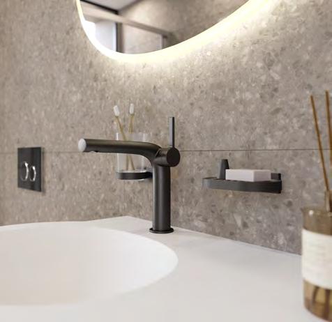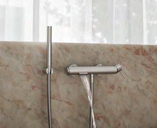 Alle drei Modelle – frei stehend, wandgebunden oder Eckbadewanne – werden aus dem hochwertigen Mineralwerkstoff Marbond gefertigt. Dazu passt das vollständige Armaturensortiment mit extra breitem Wasserfallauslauf.