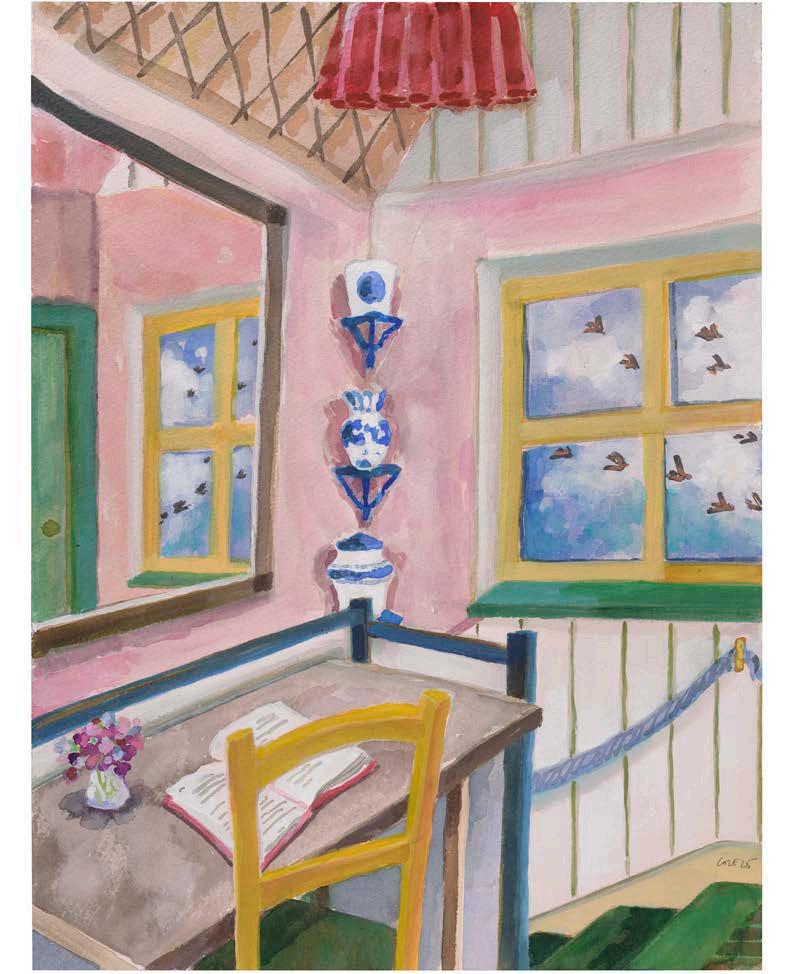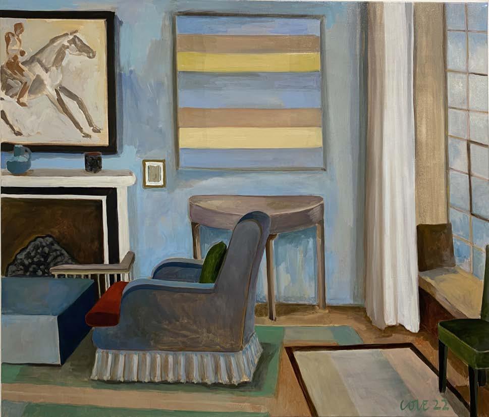 Cole’s paintings reflect her interest in Art History, provenance and the role women have played in both. She regularly looks to women artists & collectors of the past for affirmation, guidance and inspiration. She paints homes, not least because they are a realm of women, an area unlike most others where they are authored by women. Though people are rarely seen in her paintings, she believes the domestic interior contains considerable biography & human emotion from grief to celebration seen through the objects on the mantlepiece or the paintings on the wall.