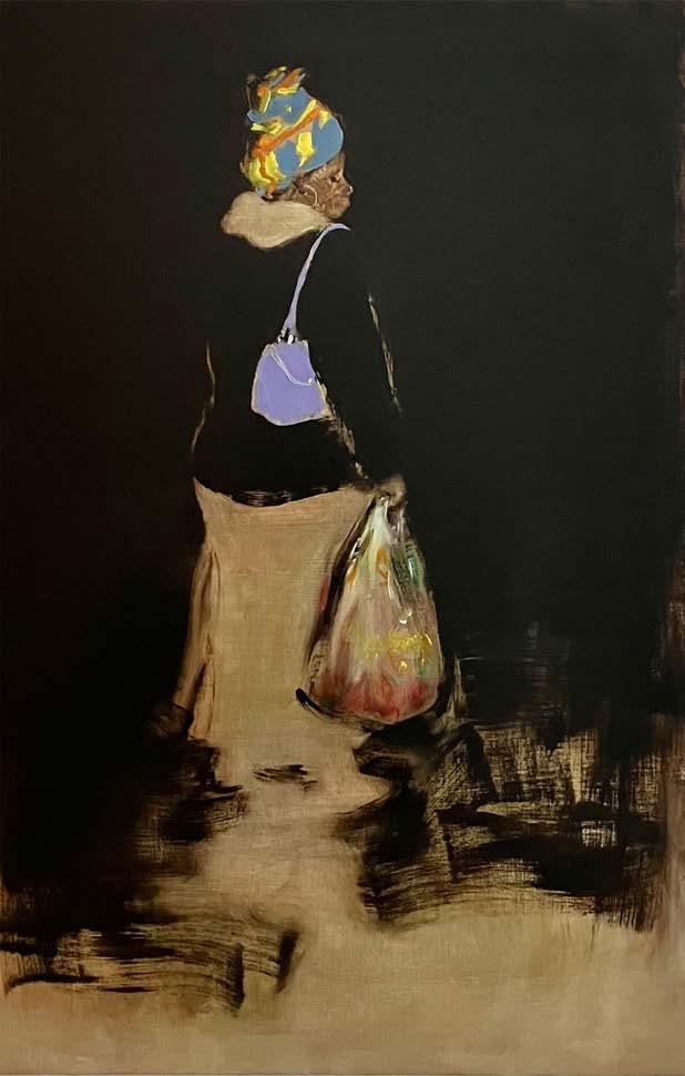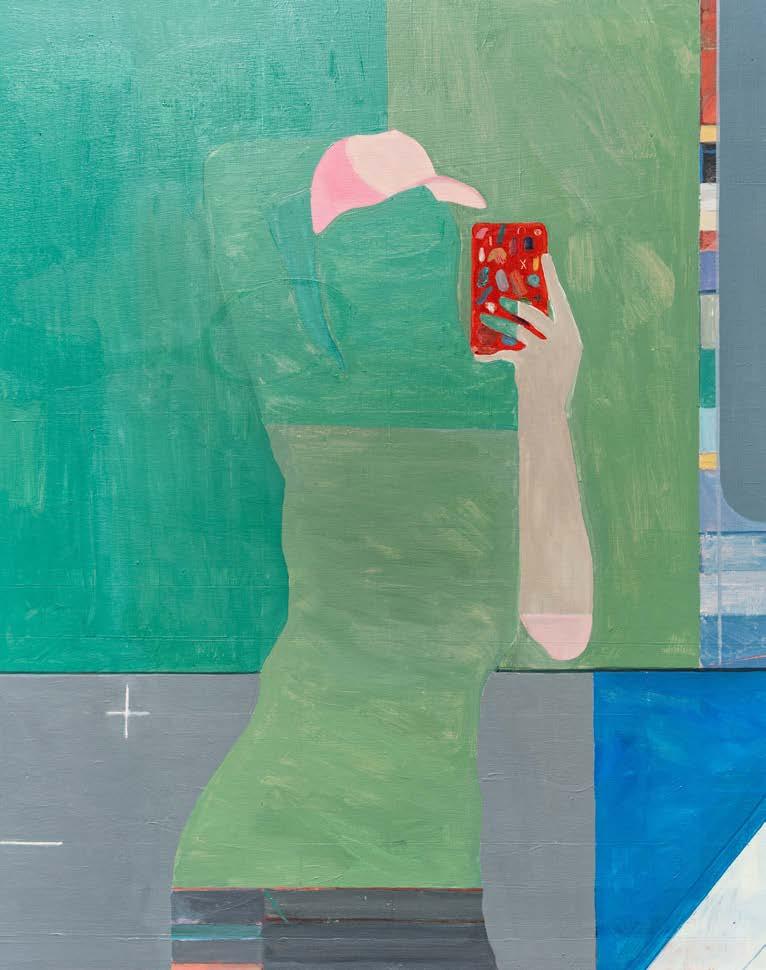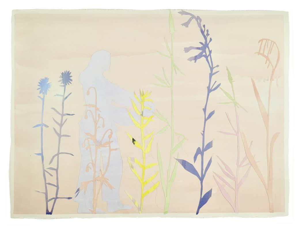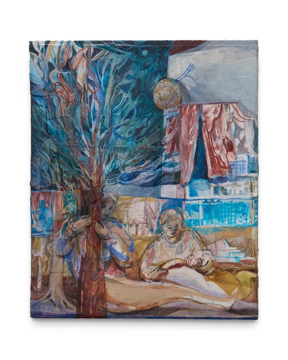 Fermie’s work explores themes of personal boundaries and belonging. She creates intricately layered compositions of collage and paint, situating female figures within their surroundings to reflect on the intersection of private and public space.
