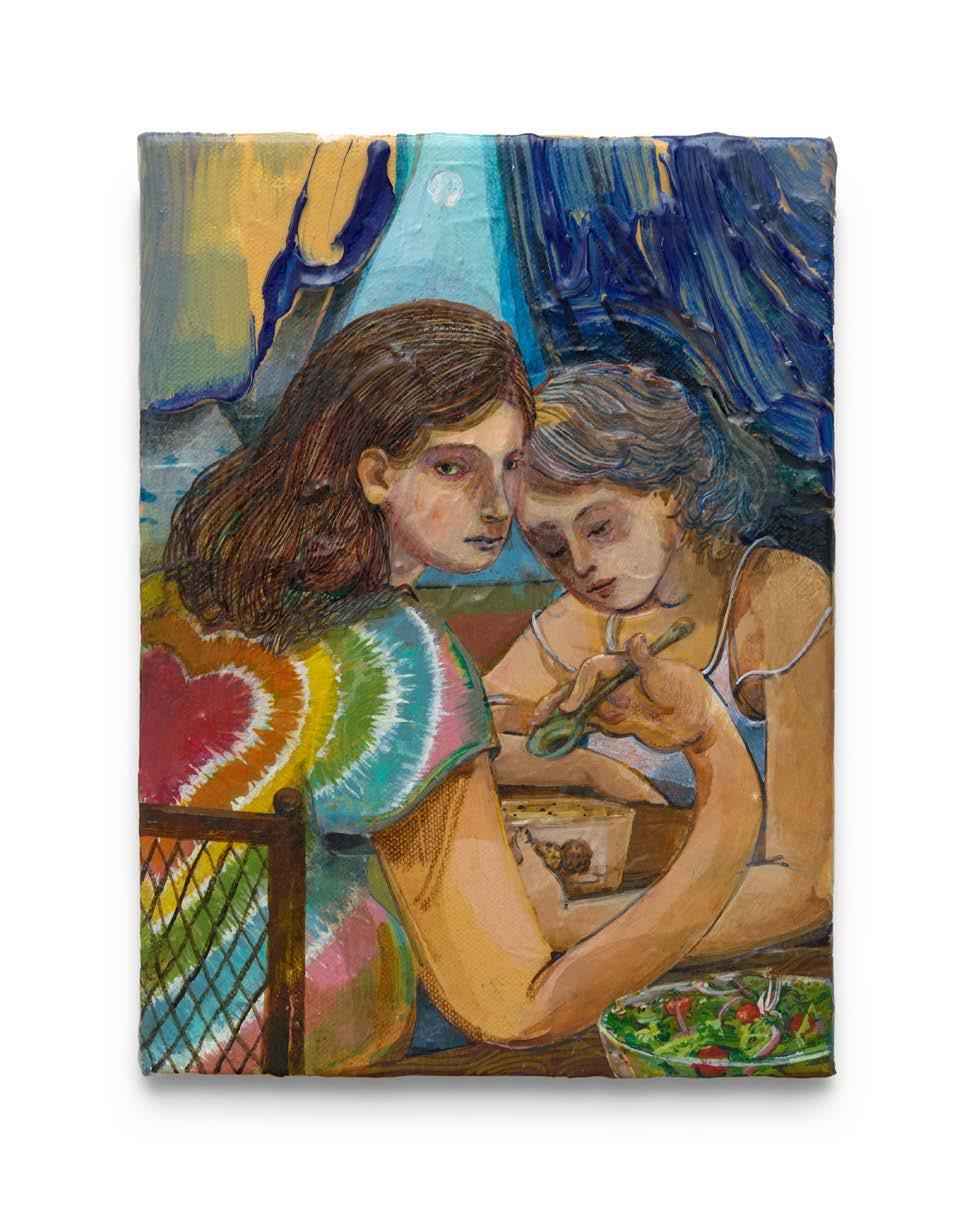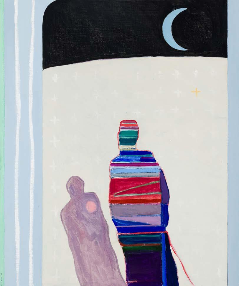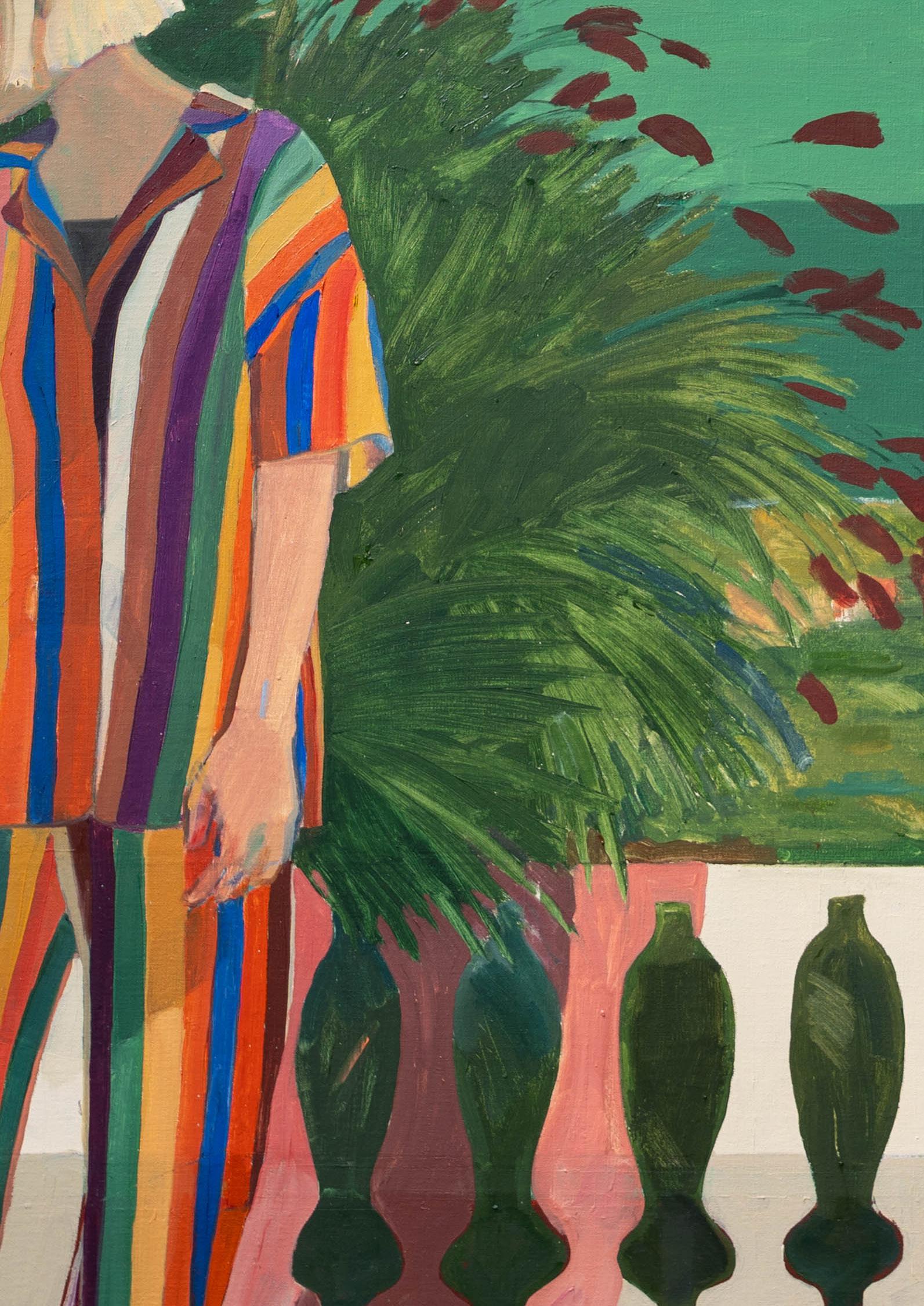 Fermie’s work explores themes of personal boundaries and belonging. She creates intricately layered compositions of collage and paint, situating female figures within their surroundings to reflect on the intersection of private and public space.