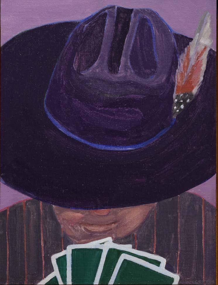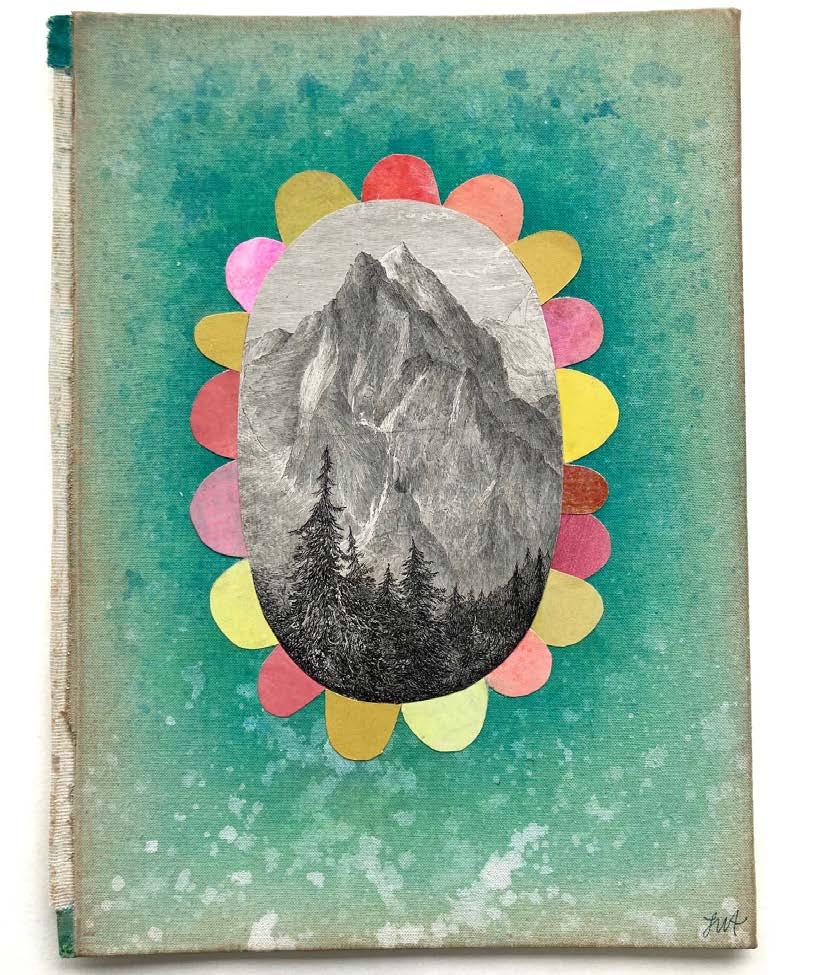 Acrylic and gouache on found book cover 16 x 19.5 cm
