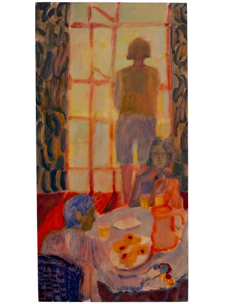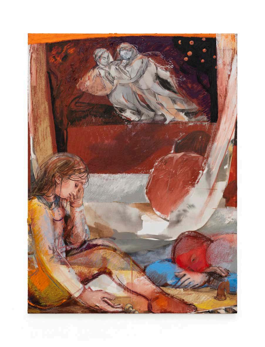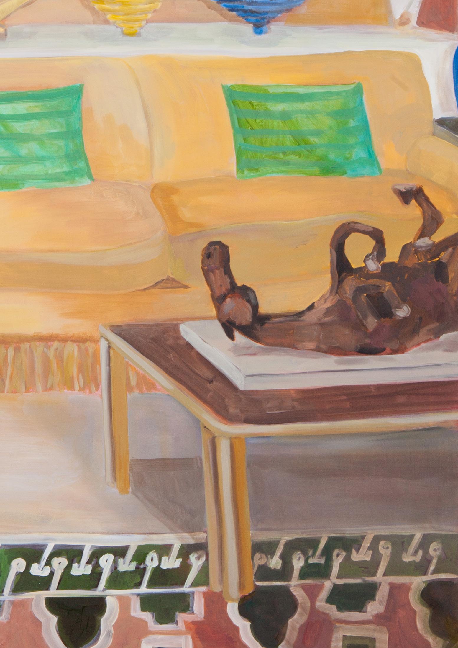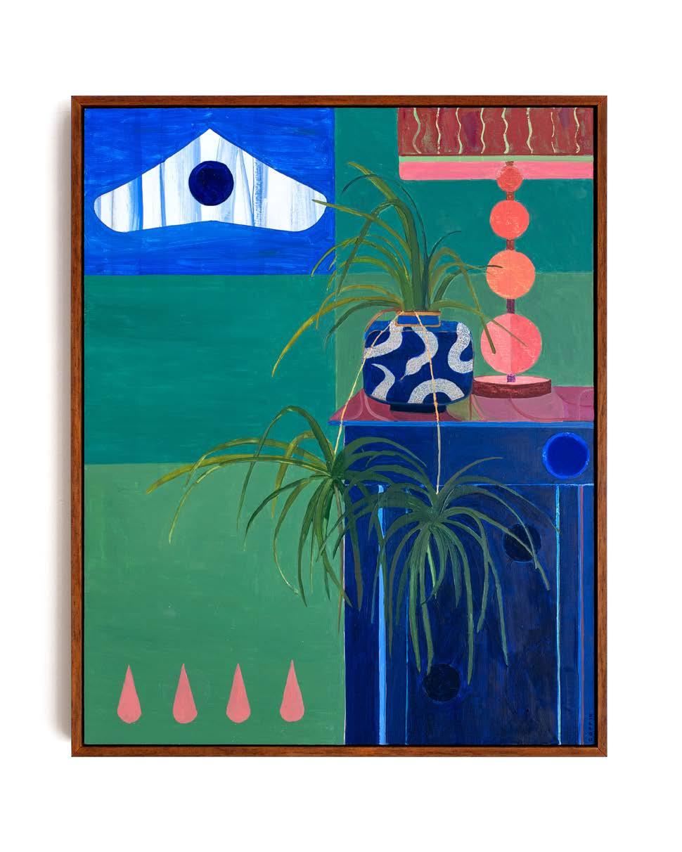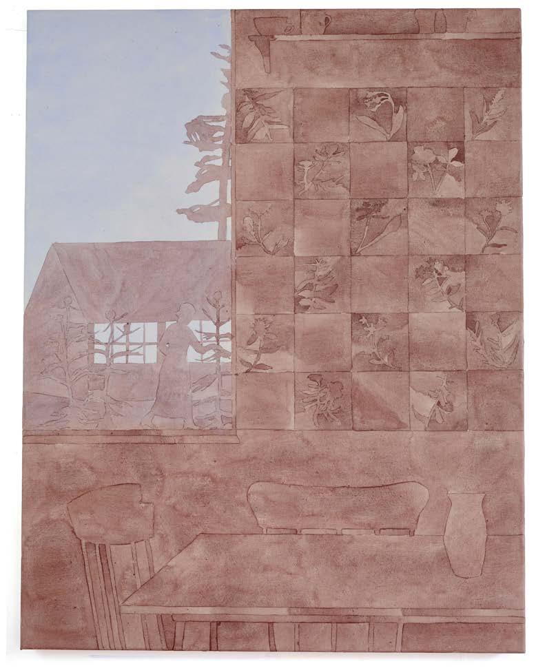 Drawing on cultural depictions of the home—from pre-Renaissance interiors to contemporary set designs—her paintings investigate how spaces shape identity and the subtle narratives embedded within domestic environments.