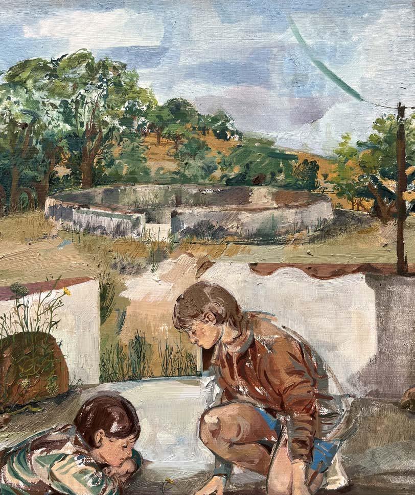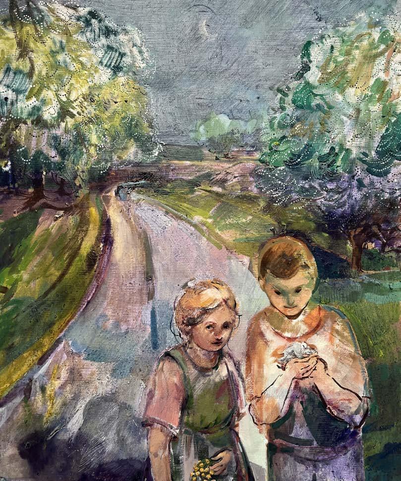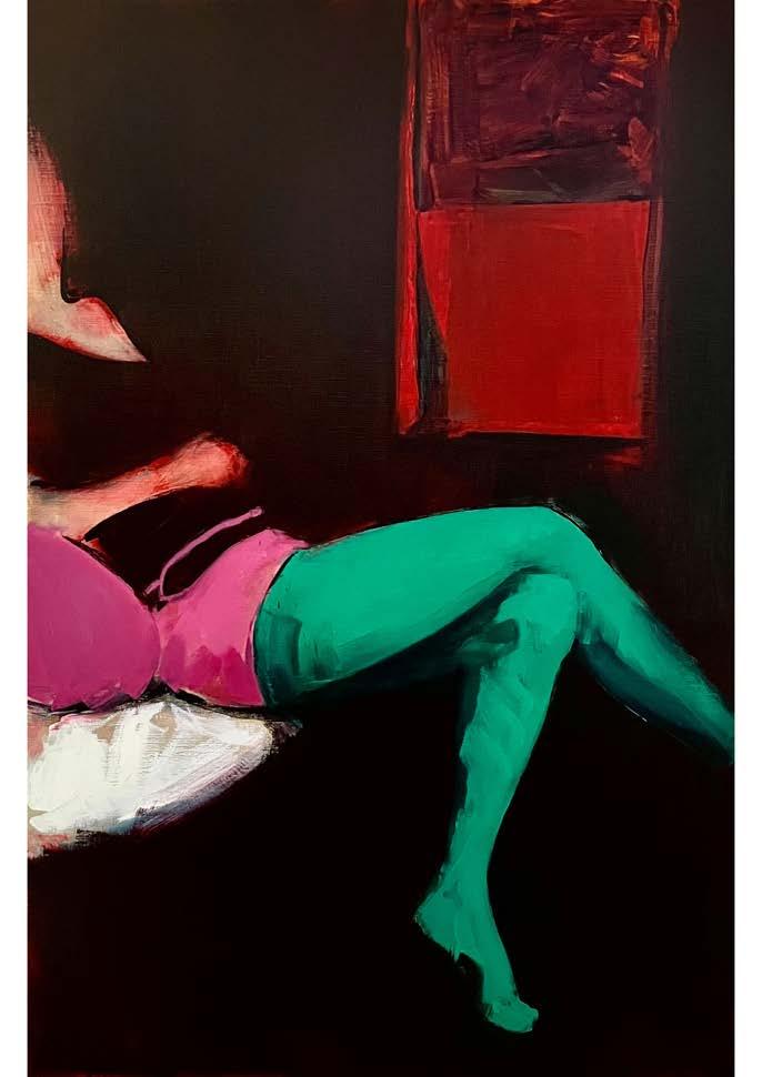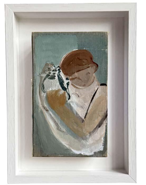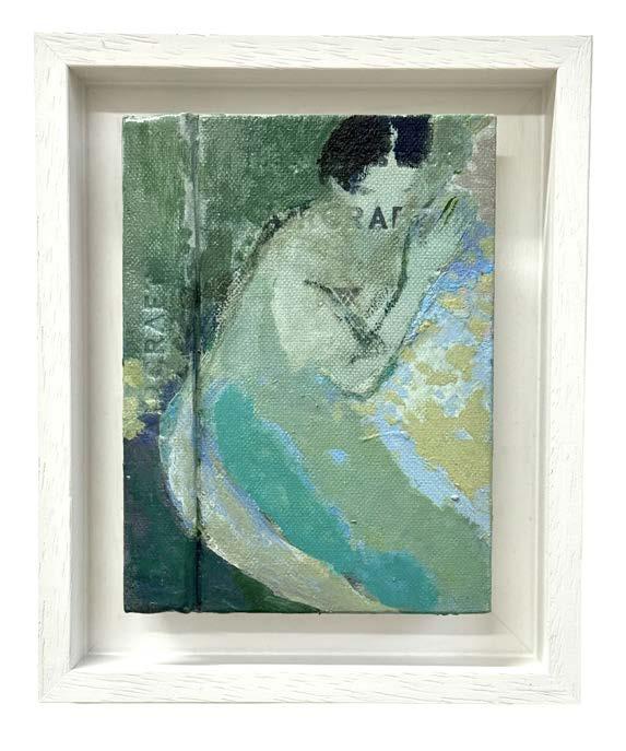 Davina’s work explores emotion, memory, and introspection through the quiet moments of everyday life. She examines how we inhabit our bodies and reveal inner truths through subtle gestures, eye contact, and posture. Drawing on theatre, storytelling, photography, and personal experience, she investigates the poetic and human aspects of ordinary spaces. Her experimental practice includes painting on found book covers and objects, using pre-existing surfaces as both a palette and a conceptual layer, exploring the interplay between inherited meaning and personal expression.