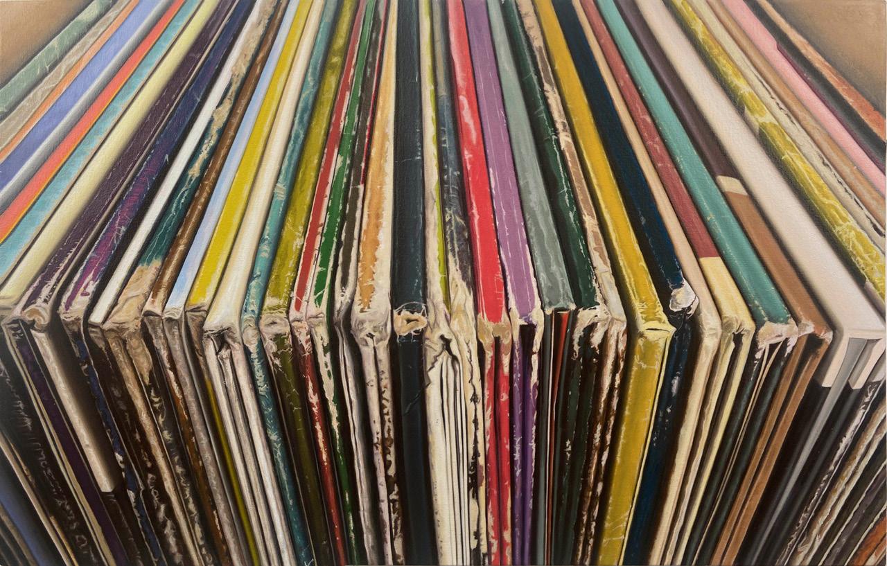 The Paintings portray collections of objects such as books, records and ephemera that reveal hobbies and passions. I am fascinated by the backstories of keepsakes and cherished possessions and how they ignite our interests motivating us to connect with them as tokens and trophies. And how that memorabilia can model counter cultures.