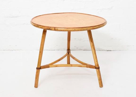Finnish rattan / bamboo side table with a carelian birch veneered table top.