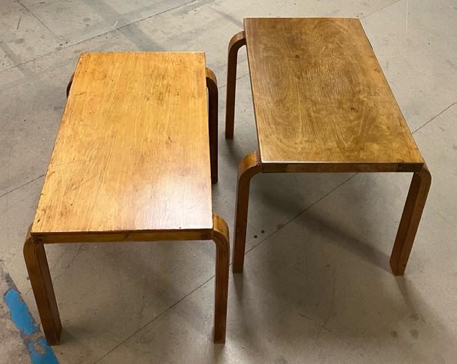 Finnish still life oil painting depicting Alvar Aalto’s ”sandwich”- stool.