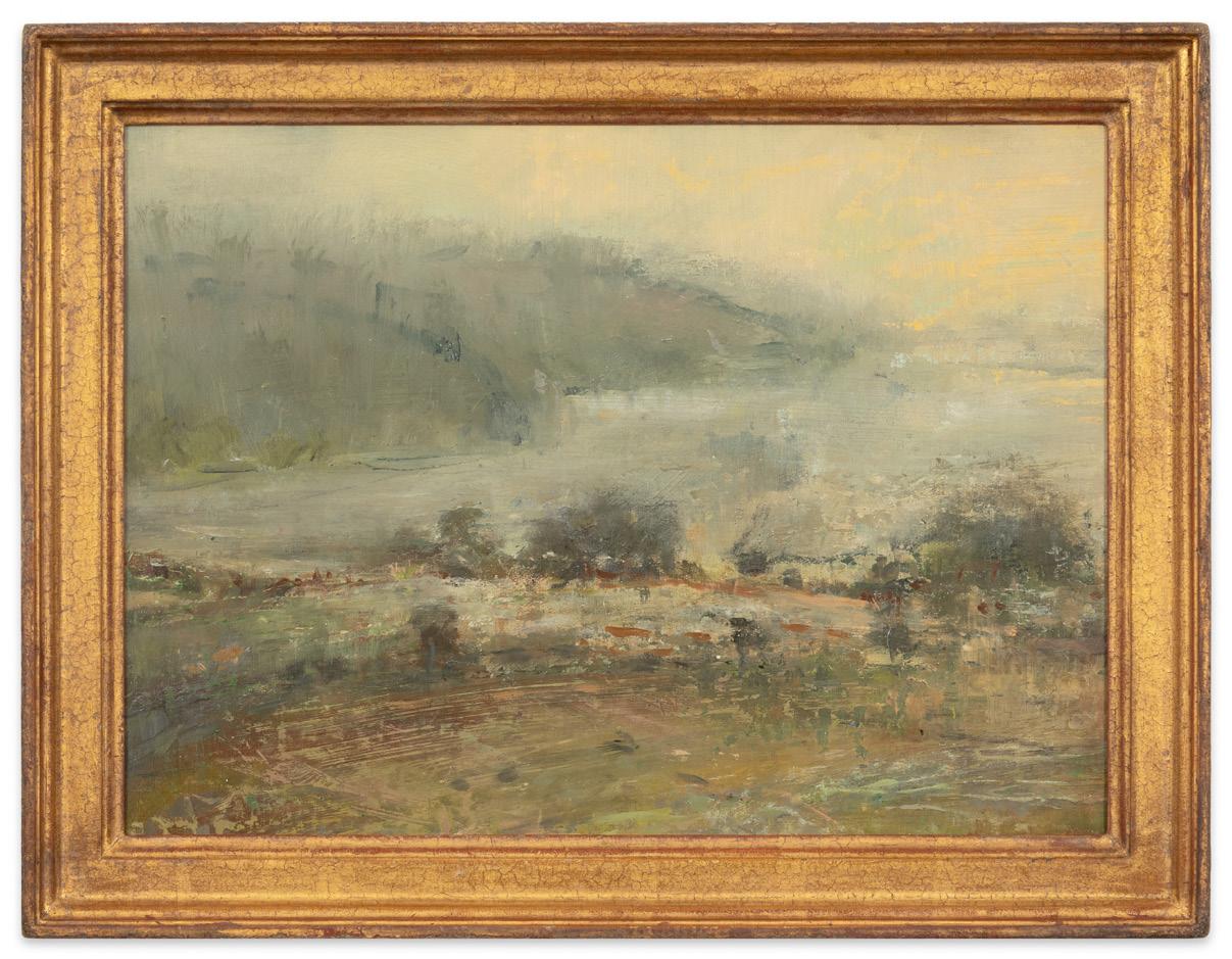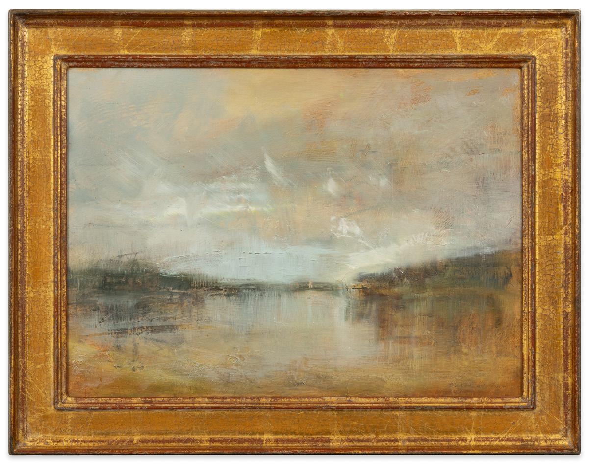 For New York based painter Pam Sheehan, plein air painting is a means of charting an inner landscape by transposing both the subtle and dramatic outer shifts of weather on the terrain. This desire to paint directly from life imparts an immediacy to each of her panel surfaces and transfixes what she sees in time. Rendered in deft strokes and a loosely romantic manner, Sheehan’s works variously recall the dramatic landscapes of J.M.W. Turner and the English formalist painters of the 19th century, yet they defy being confined by either genre. Similar to Robert Kulicke, the artist’s late husband and long-time mentor, Pam Sheehan’s compositions are beautifully set in weathered period frames that accentuate the refined subtleties intrinsic to her work.