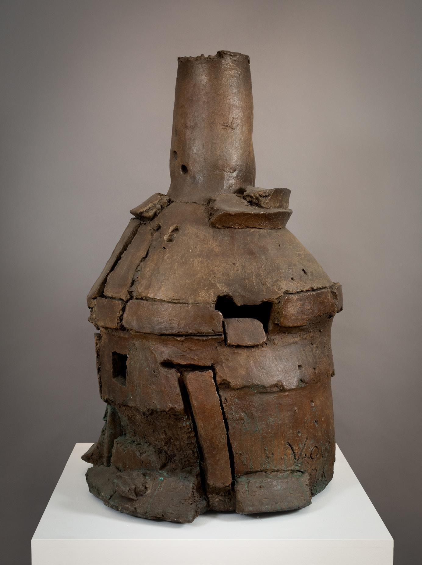 Key West S15 (2000) is a prime example of Voulkos’ use of intricate and sophisticated casting methods to make his bronze works. Likely molded from an original clay version of Key West S15, Voulkos used a multi-step system for capturing all of its intricate details. The resulting form and surface is a tour-de-force of the expressive possibilities of bronze. The rugged, craggy texture on the protruding chunks conveys the feeling that you are actually looking at clay and not metal, one of the highest achievements possible in the medium. An edition of 5 with 3 artist proofs, at the time of this printing only four castings have been completed, with this being edition number 1 of 5.