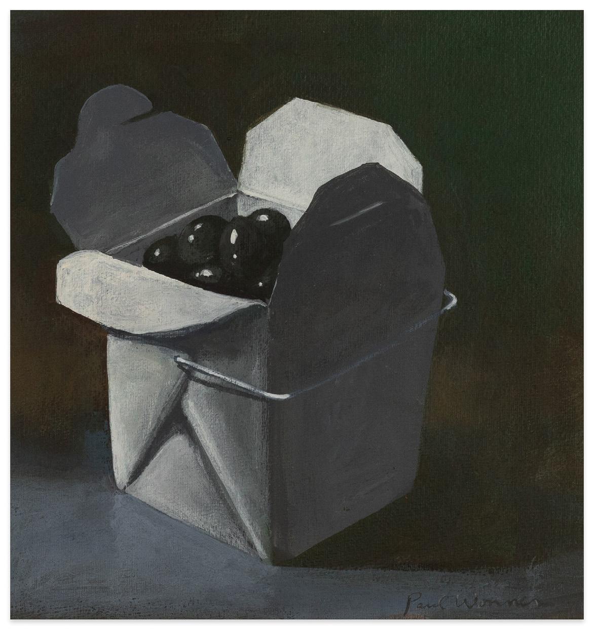 Paul Wonner, Carton of Olives, 1992 acrylic on paper, 8 1/2 x 8 inches