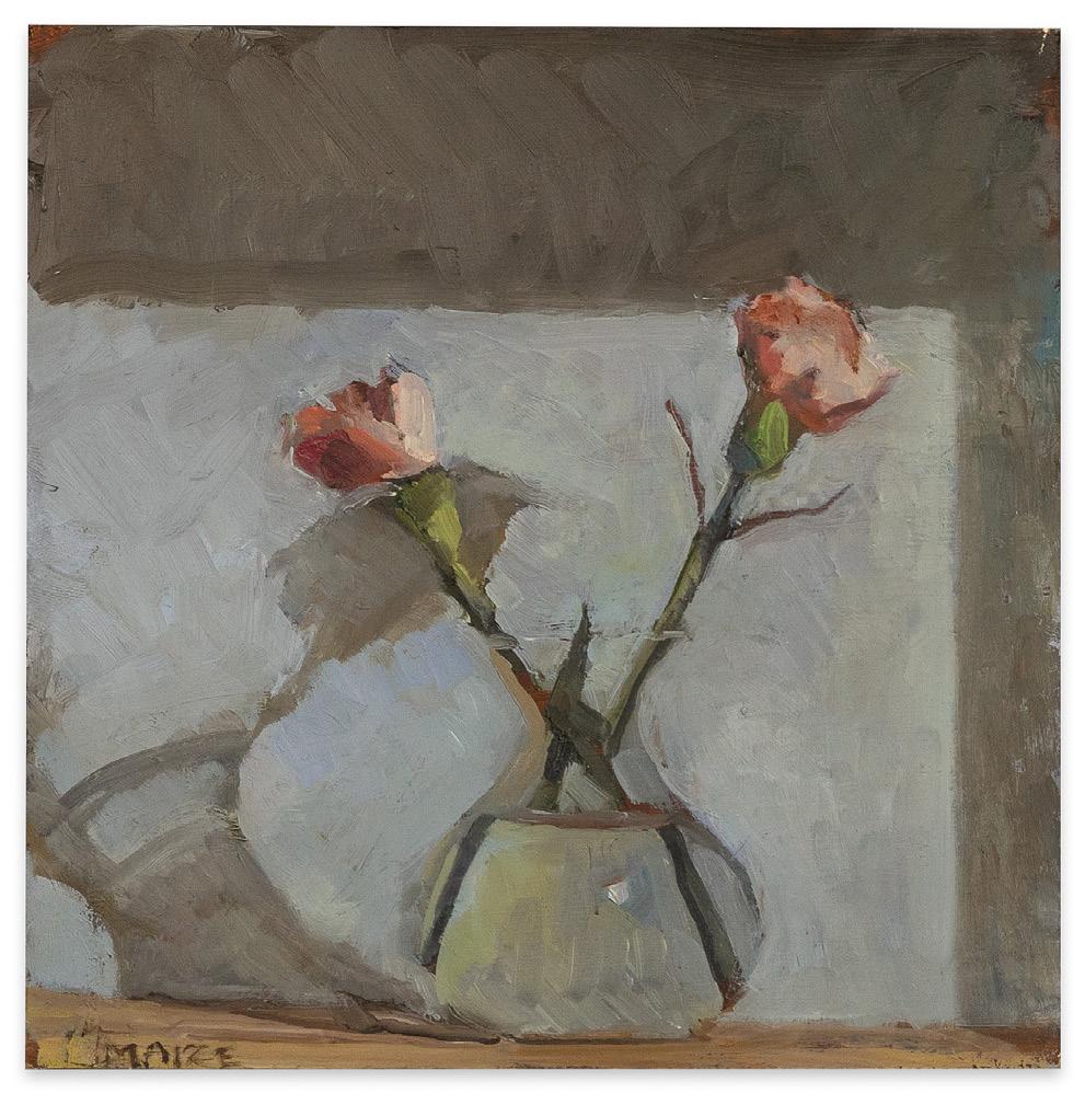 Catherine Maize, Two Carnations, 2022 oil on panel, 6 x 6 inches