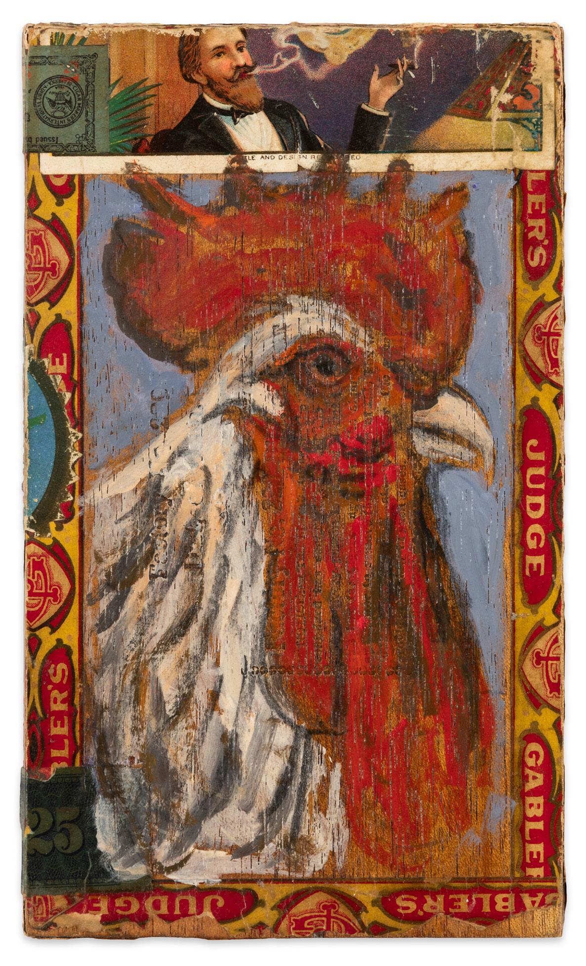 Celebrated for his folk-like landscape paintings full of dogs, birds, horses, and humans, Roy De Forest (1930-2007) has been recognized as one of the most original painters of his generation. De Forest began as an abstract painter while a student at the California School of Fine Arts (later known as the San Francisco Art Institute) and at San Francisco State University, where he completed his Master’s degree in 1956. He first showed at San Francisco’s East-West Gallery before moving over to the city’s legendary Dilexi Gallery in 1960. Around the time of his move to Dilexi, De Forest was working as an art handler at the San Francisco Museum of Art (now SFMOMA) and was inspired by looking at the backs of paintings to make a series of elaborate constructions that hang on the wall like paintings. This series would later inform the creation of his elaborately carved ornamental frames with sculpture that began appearing around 1980.