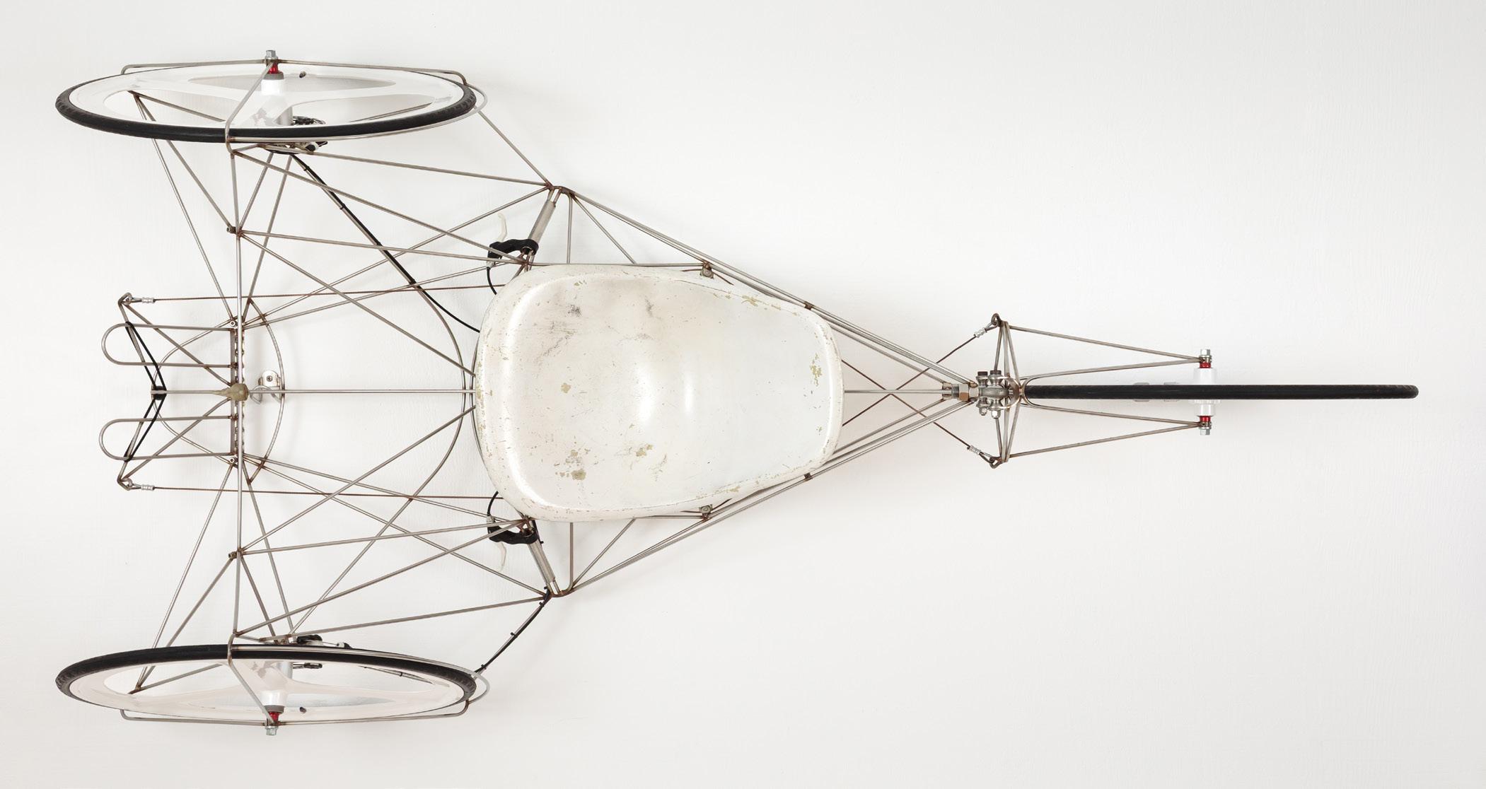 HibmaCronan first learned about the earlier derbies while studying Sculpture and Furniture at California College of the Arts, which served as important early influences to his work. In many ways, Ground Looper stands as an homage to the threewheeled derby vehicles built by Don Potts, Ron Covell, and HibmaCronan’s longtime artistic hero, Michael Cooper.
