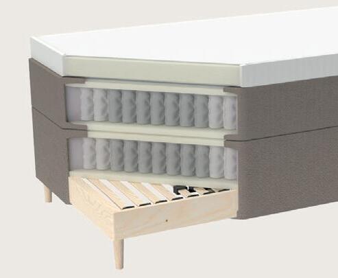 Våra pocketsystem nns i era komfortnivåer, där varje detalj är noggrant utformad för att ge dig den vila och den sömnkvalitet du behöver. Vi fokuserer på komfort, kvalitet och hållbarhet och erbjuder 25 års garanti mot äderbrott. Ju högre komfortnivå du väljer, desto bättre stöd, följsamhet och tryckavlastning ger sängen.