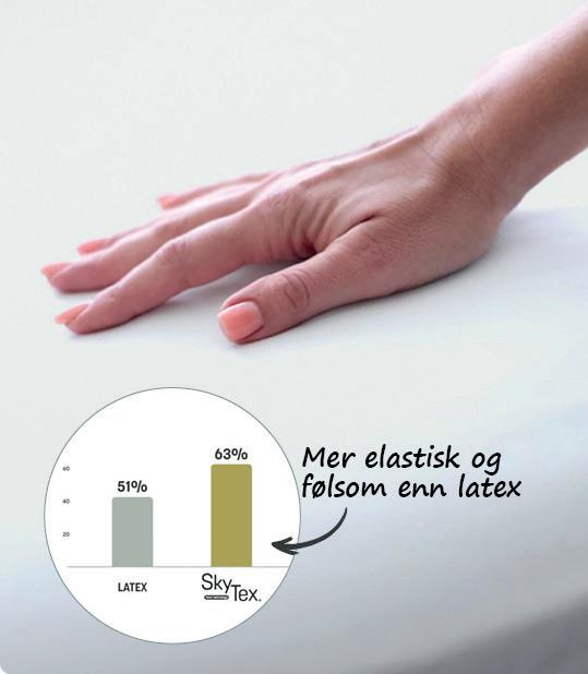 SkyTex® føles like myk og eksklusiv som latex, men er samtidig mer elastisk, mer følsom og langt mer holdbar.