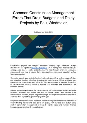 Paul Wiedmaier is a committed Project Engineer with four years of experience leading civil and renewable energy construction projects valued at more than $90 million. He earned a Bachelor of Science in Construction Management from Wayne State University in Detroit, Michigan, and holds an OSHA 30-Hour Construction Safety Certification. His expertise includes managing multidisciplinary teams, maintaining schedules, and ensuring compliance with quality and safety standards to achieve project goals. For the past three years, Paul has worked with Weiss Construction/Weiss Renewables in St. Louis, Missouri. As an Assistant Project Manager, he organizes and tracks RFIs, submittals, and design clarifications, participates in site visits to confirm progress, and addresses on-site challenges. He also coordinates engineering, procurement, and construction efforts, calculates quantities for bulk materials to support procurement, and monitors subcontractor invoices, change orders, and purchase orders to ensure alignment with contract terms. In his role as Project Engineer at the same company, Paul collaborated with architects, engineers, subcontractors, and vendors to support a $90 million project, ensuring effective communication and resolution of issues. He helped develop Construction Work Plans focused on safety and sequencing, created an Excel-based asset management and maintenance tracker, verified equipment specifications with plant engineers, and managed security access for employees and subcontractors. Before this, he worked as a Project Engineer at JS Vig Construction in Plymouth, Michigan, where he supported project scheduling, procurement, and subcontractor coordination. His responsibilities also included reviewing contracts, RFIs, and RFCOs, performing quantity takeoffs, and assisting in competitive bid preparation for projects ranging from $500,000 to $20 million.