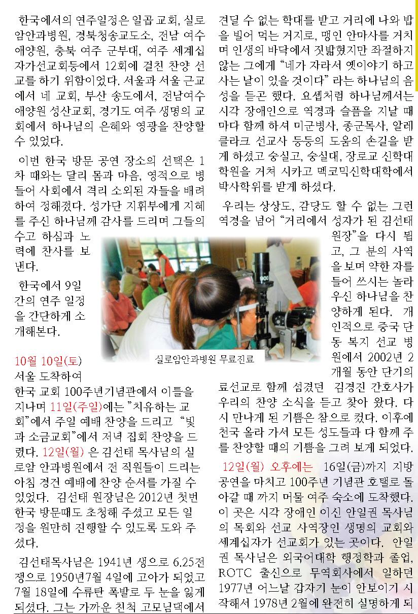 2년 전부터 계획하고 준비해온 제4차 모국순회 찬양선교를 감행할 수 있었기 떄문입니다.