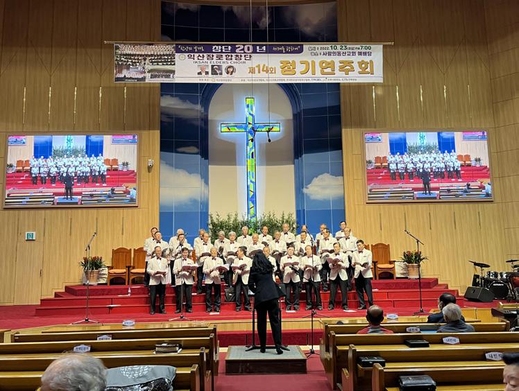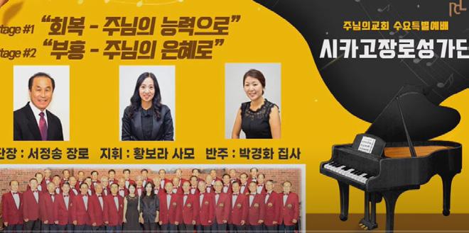 “stage#1, 회복-주님의 능력으로 stage#2, 부흥-주님의 은혜로“로 구성된 시카고장로성가단의 연주는 대면, 비대면으로 예배를 드린 많은 교우들의 가슴에 놀라운 감동의 물결이 차오르게 했습니다. 찬양하시는 장로님들의 주류가 70대 중반을 넘어서신 연세인데도, 찬양을 통해 하 나님께 영광 돌리는 그 모습은 어떤 젊은이들보다 진지하고 열정적으로 하나님의 살아계심을 찬양했습니다. 더욱이 단원 장로님들의 일생을 담은 영상과 함께 연주한 손경민 작곡 의 ”주의 은혜라“는 찬양곡은 말할 수 없는 감동으로 흐르는 눈물이 도 저히 절제가 되지 않았던 깊은 은혜로 물들여졌습니다 사역의 다른 현 장도 마찬가지겠지만 특히 찬양은 삶이 실릴 때 가장 파워풀한 영향이 듣는 이의 삶에 미치게 되는데, 시카고장로성가단의 찬양은 삶이 실려 있어서 더 큰 감동과 은혜로 듣는 이의 가슴을 가득 채웠습니다. 개인적으로 저는 올 2월에 돌아가신 아버님이 남가주장로성가단원으 로 근 30여년을 활동하셨기에 시카고장로성가단의 장로님들을 뵈면서 아버님을 다시 뵈는 것같은 기쁨과 감사함이 있었습니다. 특히 단장님 이 건네주신 시카고와 남가주성가단이 함께한 사진에 제 아버님 모습이 네 장이나 담겨있어서 느낌이 남달랐습니다. 금번