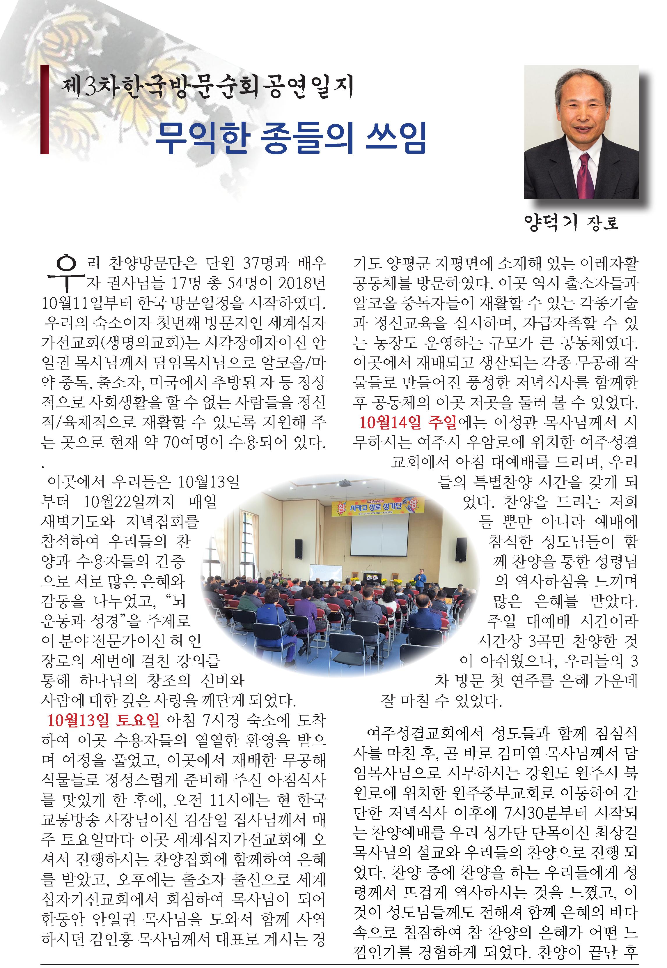 Ⅰ. 제4차 한국방문공연 서 정 송 장로