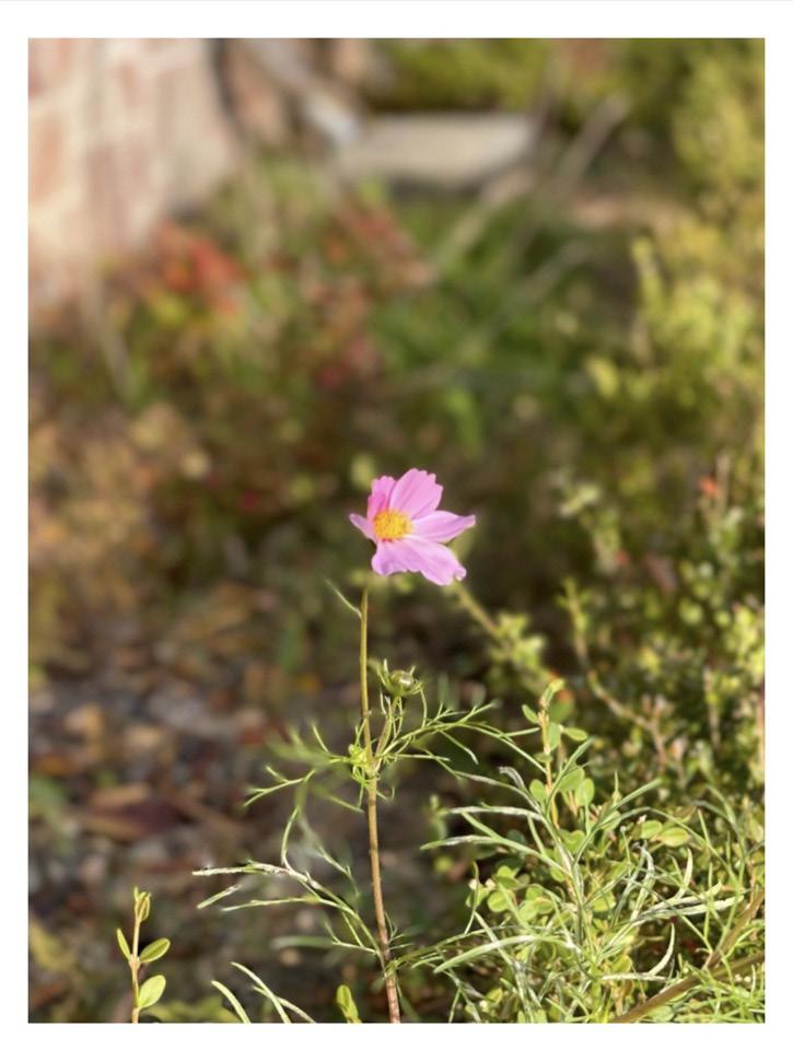 주위를 돌아보고 잎들을 자세히 보고야 철늦게 핀 마지막 한 송이 작은 코스모스인 걸 알았습니다.