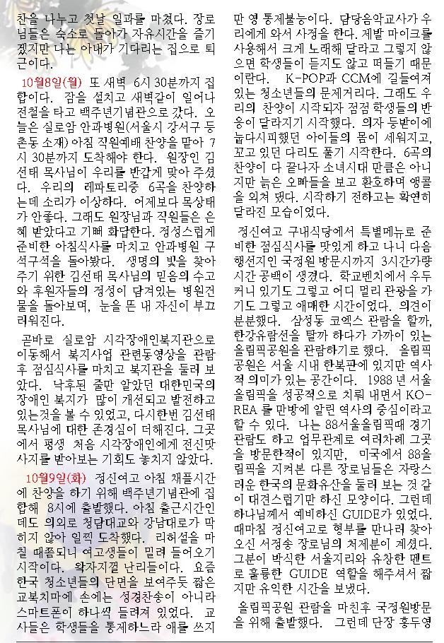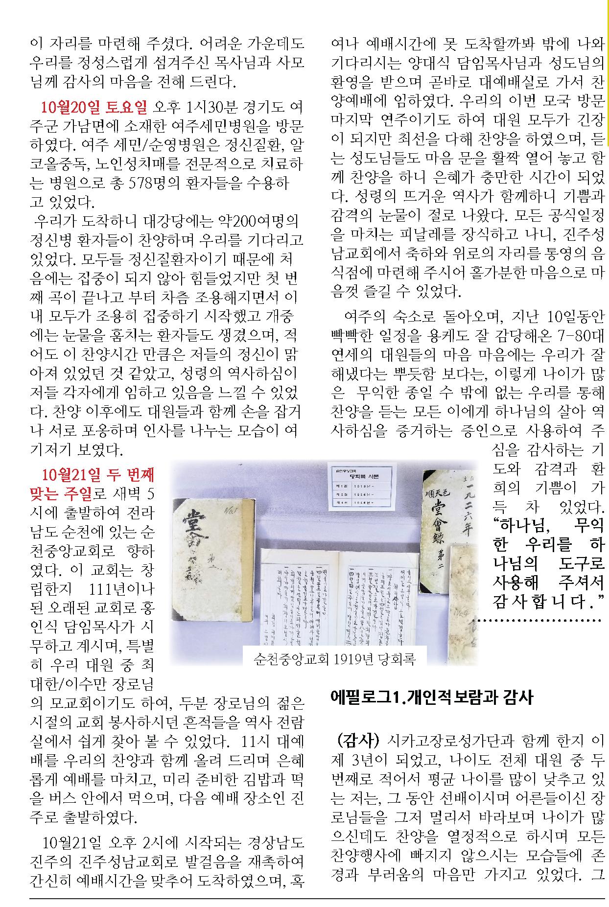 순례자로 사명을 감당하시길 저와 익산장로합창단 단원들은 기도드리겠습니다. 익산장로합창단은 내년에 기회가 주어진다면 시카고에