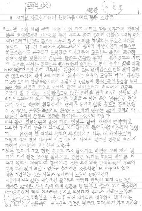 지난 10월 초 청송교도소를 방문하기로 한 시카고장로성가단이 청송교도소의 코 로나 확산으로 대신 저희 서울동부구치소에 찬양집회 일정을 변경하여 오셨습니 다 이 또한 하나님의 사랑의 인도하심 가운데 만나뵈었다고 생각합니다 제가 교도관으로서 오랫동안 근무해 오면서 이렇듯 교도소, 구치소에 예수님의 사랑으로 찾아와 주시는 선교단체를 통해서 수용자도 힘을 얻거니와 직원들도 거 룩한 도전을 받습니다 특별히 시카고장로성가단이 오신 날은 여성 수용자들이 예 배를 드렸습니다. 안그래도 감성이 풍부한 여성수용자들이 많이 회개하며 울었거 니와 구원의 감격과 기쁨을 더욱 마음껏 느꼈던 은혜 넘치는 시간이 되었습니다 저 또한 청년 때 하나님을 영접하고 찬양집회에서 마음껏 울며 구원의 감격으로 찬양했던 시간이 되살아나서 은혜의 시간이 되었습니다 교도소, 구치소의 수용자들은 입소하는 첫날부터 충격이 큽니다 다만, 이러한 고난 가운데는 하나님의 거룩한 섭리 가운데 하나님을 만나게 되는 놀라운 반전이 있습니다 교도소, 구치소에 와서야 내 힘으로 살아갈 수 없다는 것을 깨닫게 되고 가난한 마음 그릇에 하나님의 말씀이 들어올 수 있게 됩니다. 그러나 전하는 이가 없다면 얼마나 허망합니까 사랑없는 교육과 훈육으로 변화되는 죄인은 없습니다 죄인의 친구되어 주신 예수 그리스도의 진리와 사랑과 능력으로 찾아와 주시는 목 사님, 장로님, 성도님들이 계시기에 이곳 교도소와 구치소는 선교의 바다이고 구 원의 방주입니다. 저는 2008년 독일에 잠시 1년간 파견 근무를 했습니다. 짧은 외국 생활임에도 가 족 친지, 친구들에 대한 그리움이 많이 컸습니다 그래서 더욱 하나님을 더 의지했 고 더 찬양했던 기억을 갖고 있습니다. 유럽의 아름다운 경치를 보면서 자연을 만 드신 하나님의 위대하심을 찬양하였고요, 고국에 대한 그리움을 생각하면서 고향 을 주신 하나님을 생각했습니다. 영원한 본향에 가서 하나님을 직접 뵈올 때까지 시카고 교회 장로님들의 찬양사 역과 성도님들의 기도와 후원이 후대에 이르기까지 계속되길 소망합니다