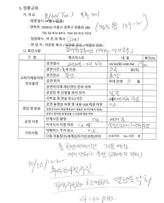 Ⅱ. 제4차 한국방문공연 준비 서 춘 희 권사 1.사전답사 74 2.코로나 팬데믹과 준비 79