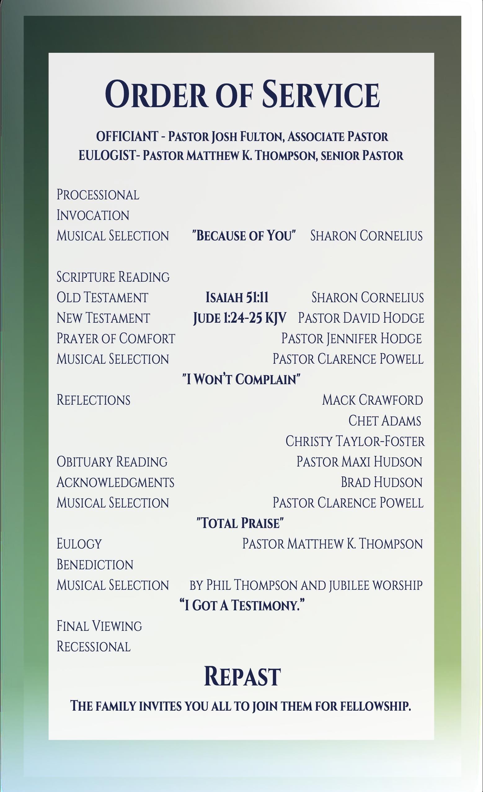The Family would like to acknowledge with deep appreciation the many expressions of love during our time of bereavement. Your thoughts and efforts were greatly appreciated. Thanks you for keeping us in your prayers.