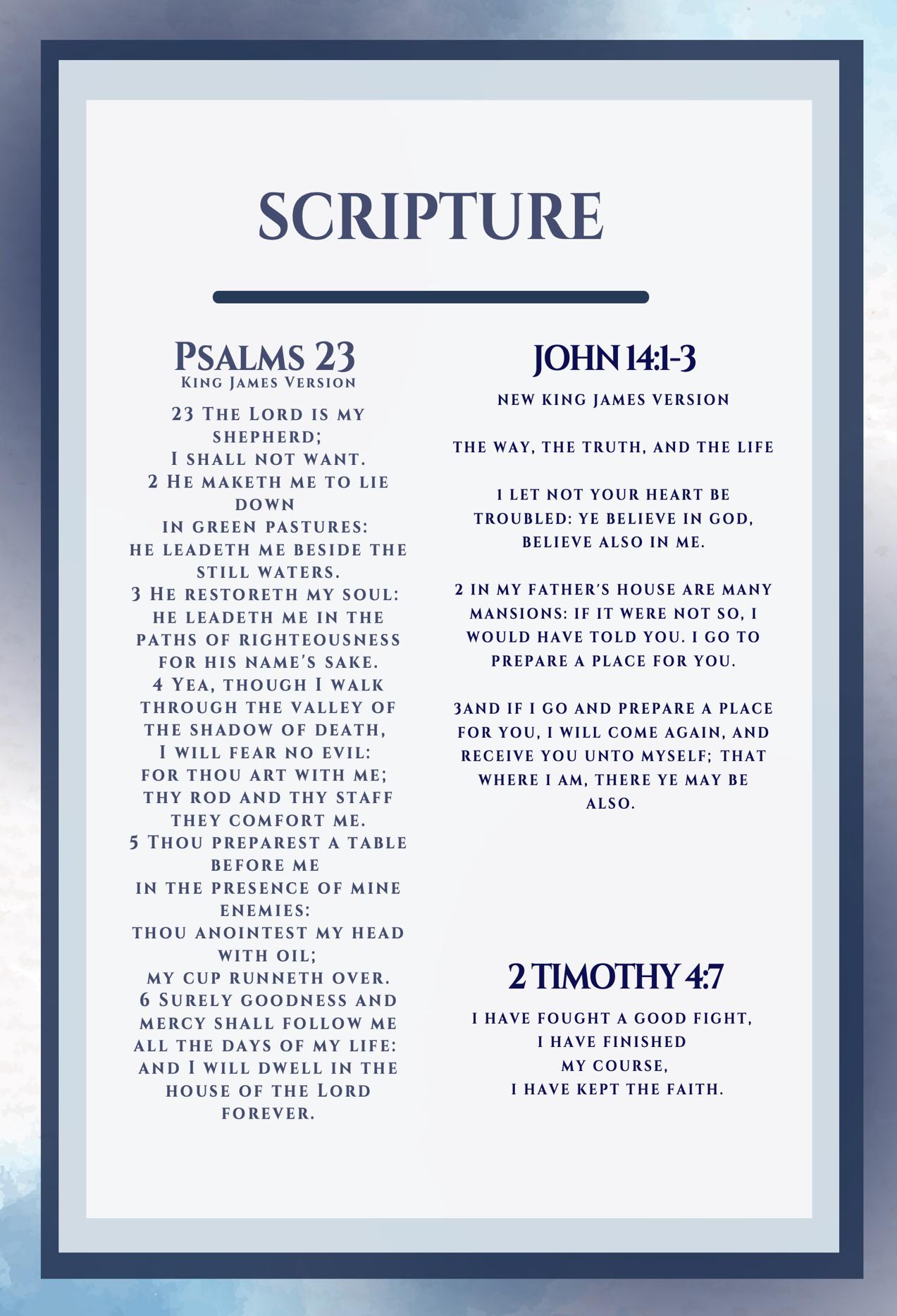Scripture Asa Dawkins, grandson 2 Timothy 4:7