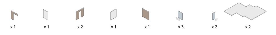Modularity: Modularity allows for faster construction timelines and easier transportability for assemblage on site. The Assembly Diagrams detail how each unit is assembled and corresponding number of components required for construction.