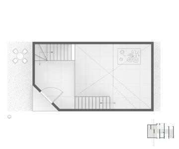 Situated on a narrow lot along Augusta Avenue near Toronto’s Kensington Market, this project draws inspiration from the dualities inherent in mixed-use buildings in the area. The design explores themes of separation and intersection, creating a home for two friends: an extroverted artist and a private writer. Despite their contrasting personalities, their shared passion for gardening shapes the program’s organization, bringing their lives together in a shared living and garden space at the heart of the house.