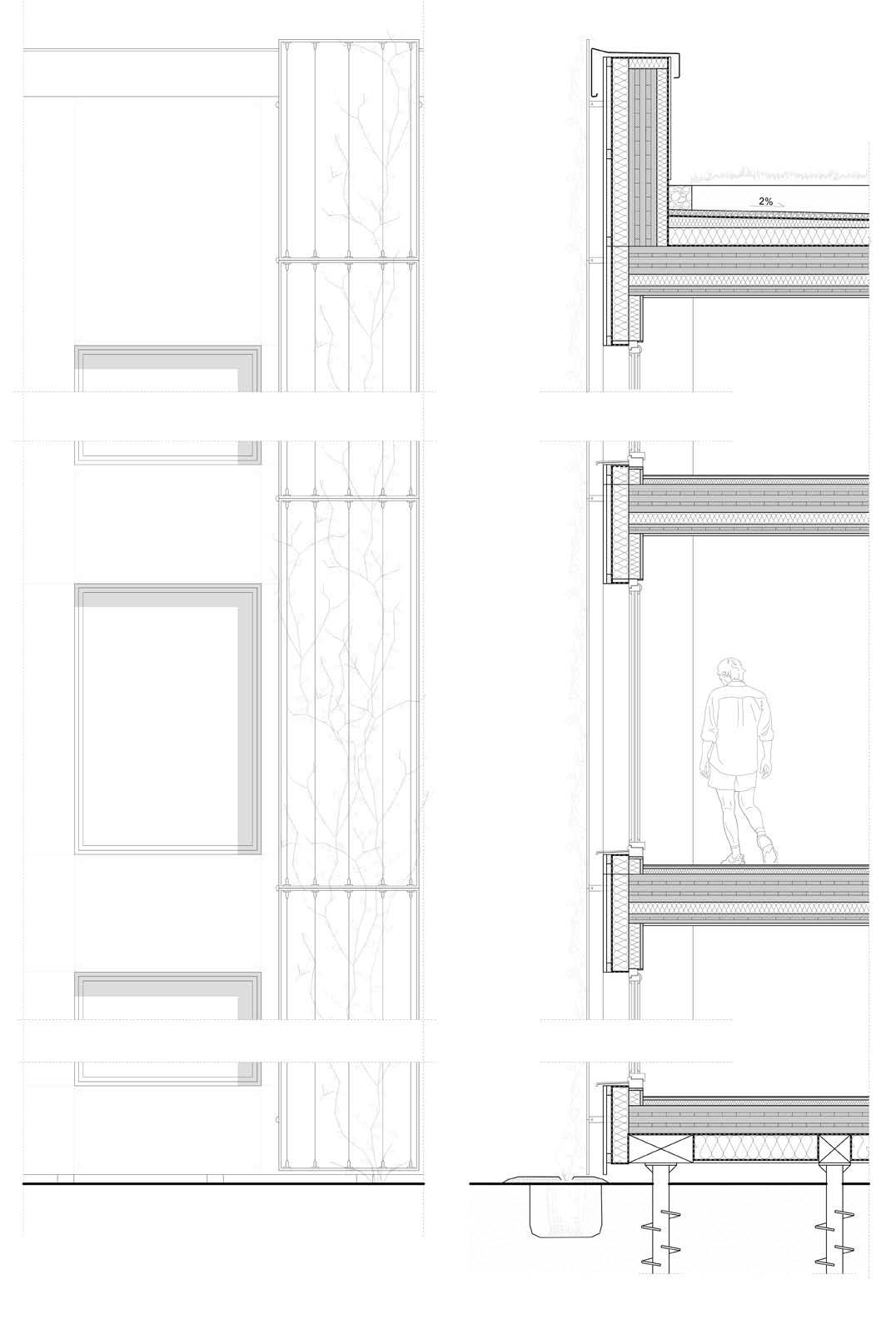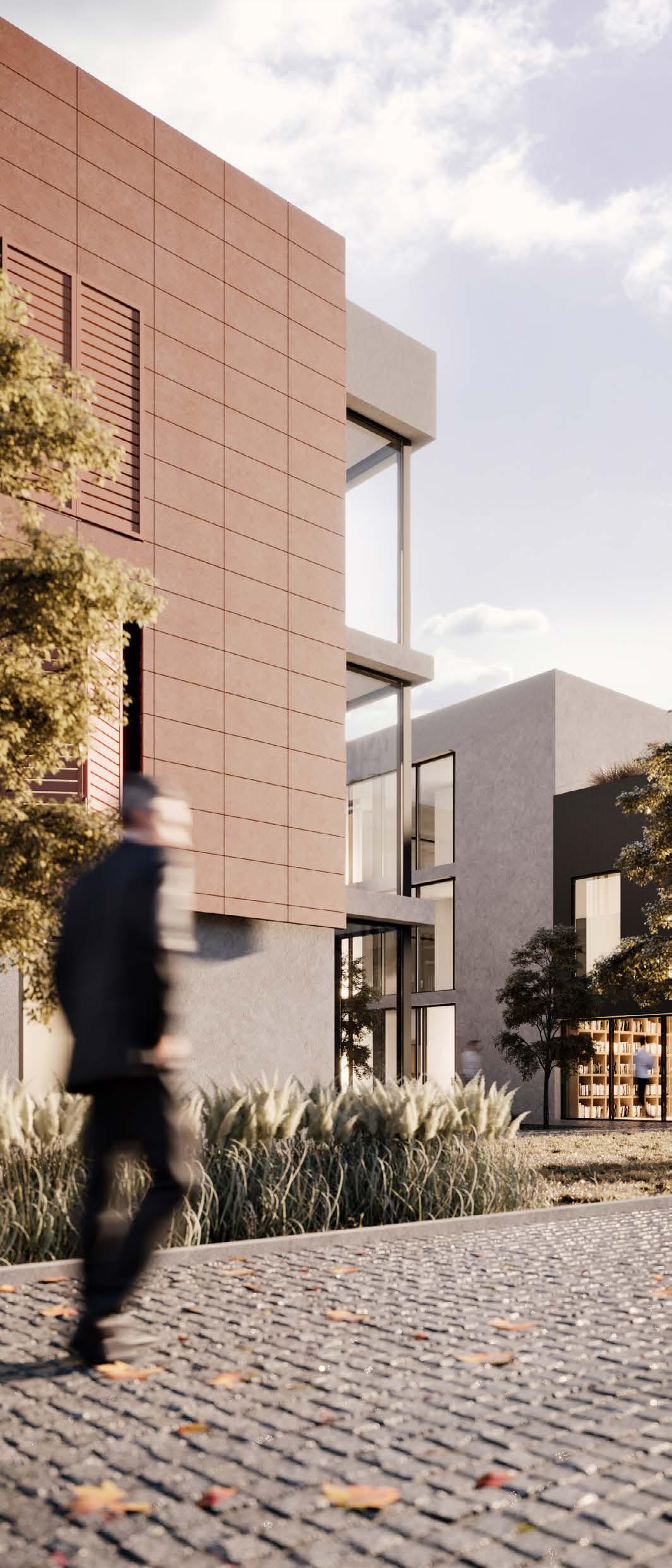 introducing the main connector in the middle part and a smaller, intermediate connector. Introduction of a green roof and greenery inside the courtyards.