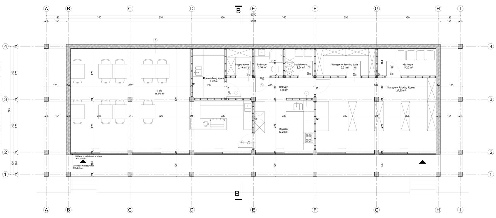 PINECONE farmhouse is a place that creates the possibility of increasing the popularity of agriculture by encouraging the community to self-cultivate and providing education about agriculture on the island, as well as provide safe shelter during hurricanes for local people. Thanks to the individual and innovative ”pinecone” system, the buildings are able to transform in a few minutes from open, widely accessible community meeting place into a closed, sheltered space, providing appropriate physical and mental conditions for survival during extreme conditions.