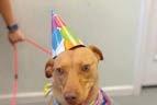 ◄Here I am blowing out the candles...it’s my first birthday! My name is Aster and I’m a Yellow Lab mix girl, as sweet as can be. Can you guess what my birthday wish was? I bet you can...it’s to be adopted! All my siblings have found homes and there’s absolutely no reason that I haven’t either. I love to play with children, I love to play with dogs, I walk well on a leash, I enjoy going for walks, and I have a lot of fun with toys. I’m also spayed, vaccinated and on heartworm prevention. Please come to the shelter and see for yourself - I’m a great girl and would be devoted to you! ♥