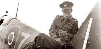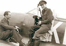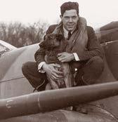 In the above photo, Mascot puppy Lucy charms its way into the heart of pilot Roy Wosniak (R) and fitter Sergeant Delong. The photo to the right is Pilot Officer Willie Lane with Lucy. The look of gentleness on his face tells us how much comfort these dogs were capable of giving these stressed young men.