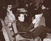 Group Captain Bill “Iron” MacBrien, otherwise known by the pilots as “Tin Willy” owned this massive Great Dane, reading over the shoulder of McBrien in this set up shot. Photo via Dean Black of Airforce.ca.