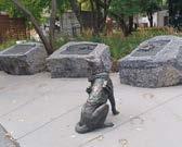 A bronze, life-sized statue of a medical service dog stands guard over the dedication. It is wearing an authentic replica of a medical backpack that war dogs used during the First World War. The Animals in War Dedication was created in 2012 by Canadian artist and sculptor David Clendining. Photo credit: Veterans Affairs Canada.