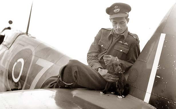 RCAF Pilot Officer Hugh Constant Godefroy and the 403 Squadron mascot. 403 Squadron was known as Wolf Squadron, so they had a particular love of canines, wild or domesticated.