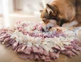Dogs process much of their environment through their incredible sense of smell. Even though their senses may dull with age, and they may not be able to wander as far as they used to, providing opportunities to sniff out new things away from or around the home can help keep life interesting for a senior dog. This may look like spending time making walks less about “doing business,” or just getting from point A to B. Find novel safe spaces to let your dog explore off-leash or on a long line. If walks are no longer in the cards, you might consider a stroller or wagon for your dog to get around in, or